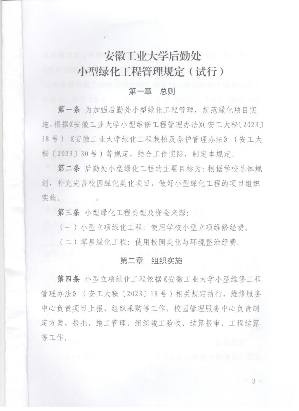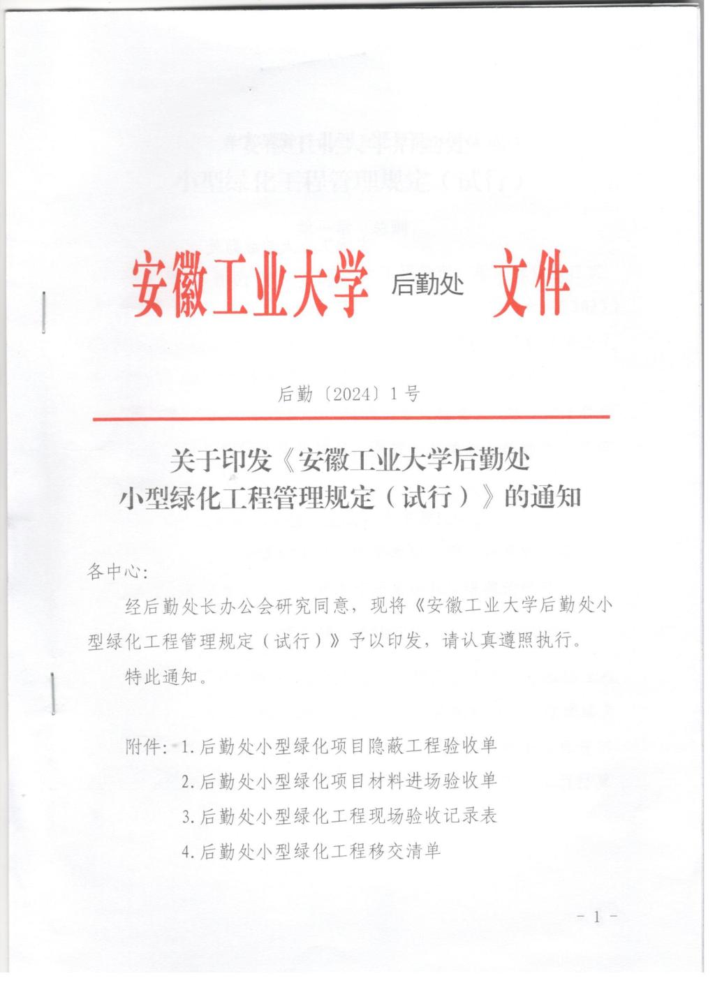 关于印发《安徽工业大学后勤处小型绿化工程管理规定(试行)》的通知