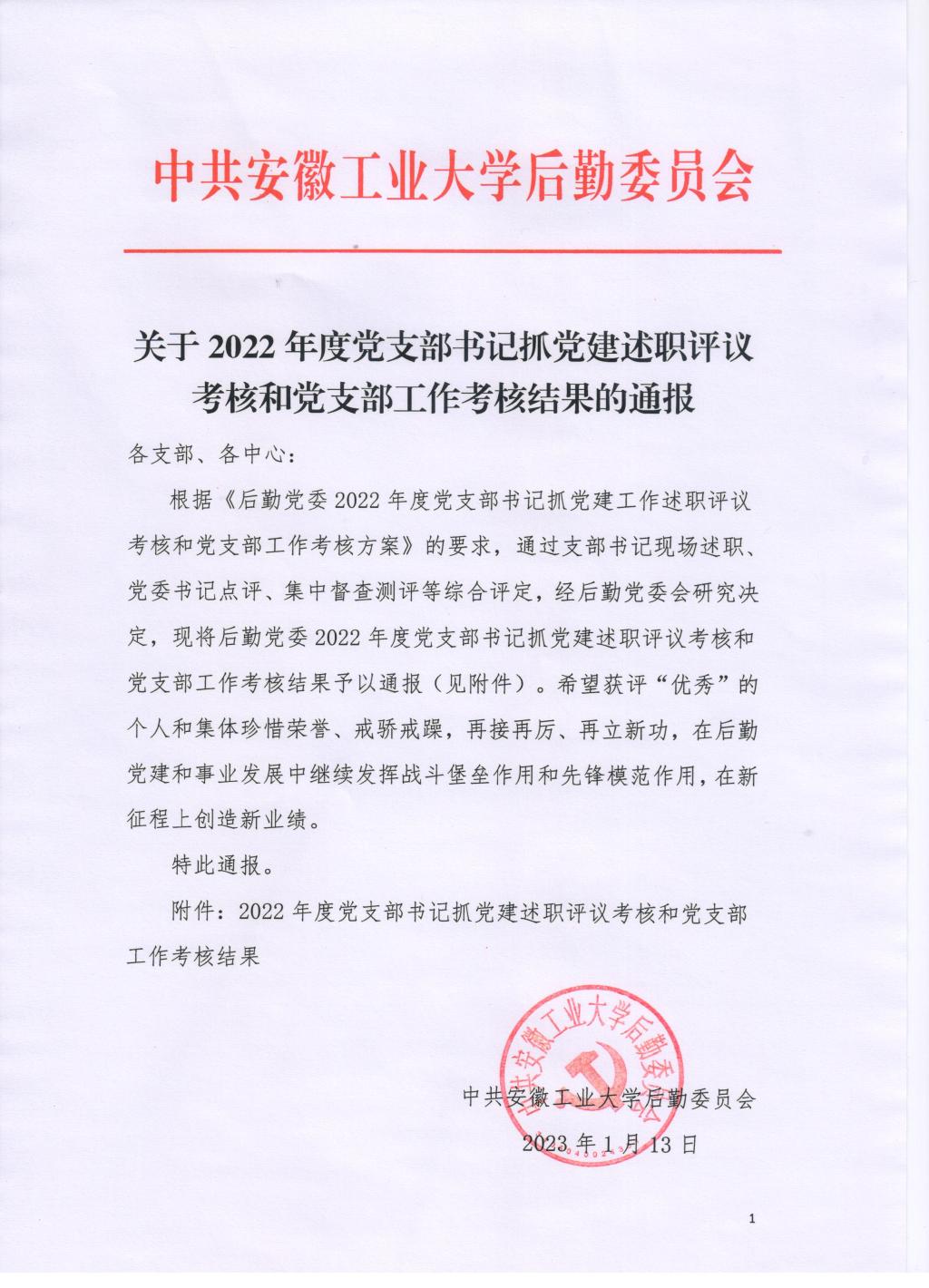 关于2022年度党支部书记抓党建述职评议考核和党支部工作考核结果的通报