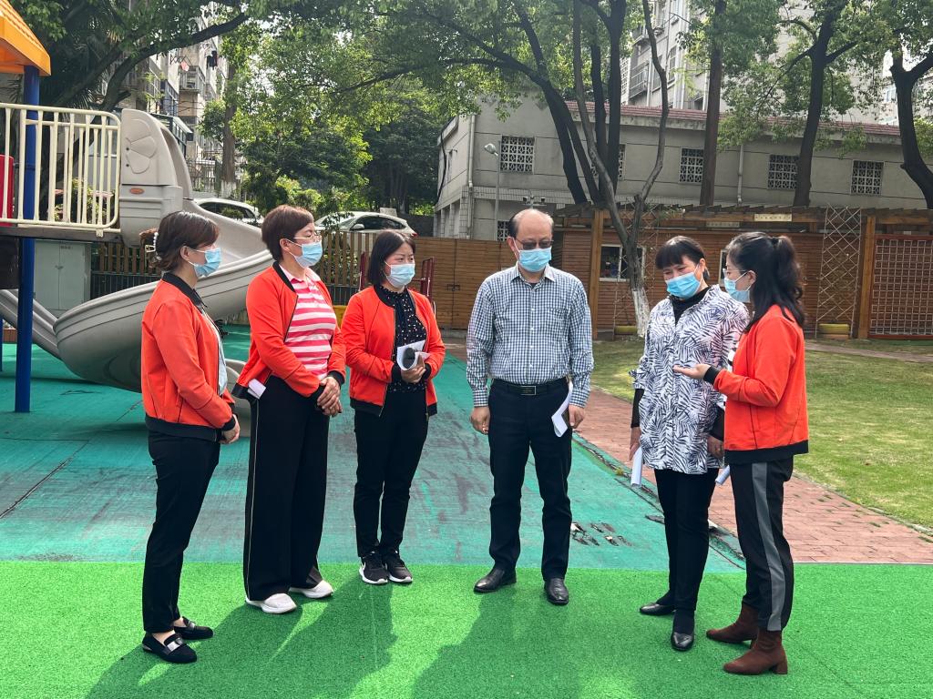 4月22日上午,副校长刘明到幼儿园检查督导疫情防控和复课准备工作,后勤处负责人陪同。