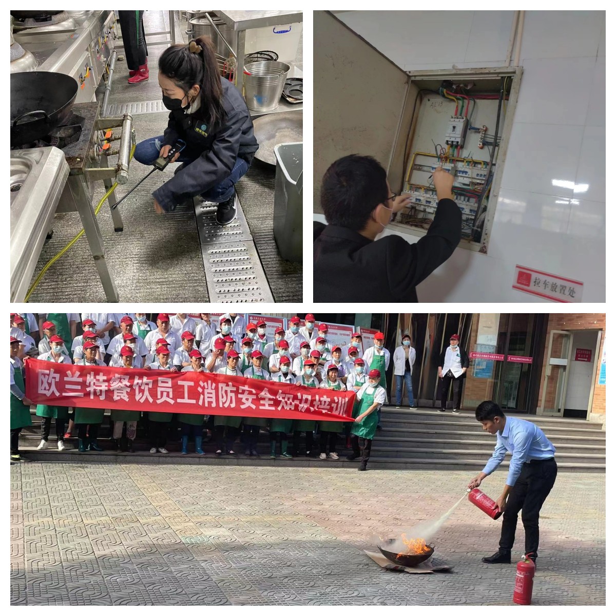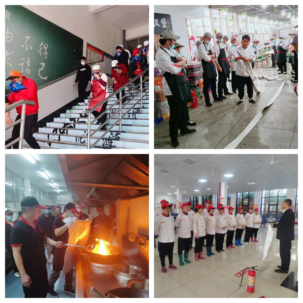 消防安全工作本着“预防为主,防消结合”的原则。食堂人员是火情处置第一人,人员的处置能力和处置技能至关重要。为了不断提高人员的火情处置能力,各食堂积极开展了实地模拟练兵,拉响应急演练警报,本次演练各食堂做到全员参与、全场景模拟、全过程演练,现场教学火情处置流程,对灭火器、灭火毯、盖锅板、防烟面具、消防栓等消防设施设备的使用进行了上手操练,提高了人员火情处置技能和消防设施使用熟练程度,为食堂消防安全工作筑起了一道“防火墙”。