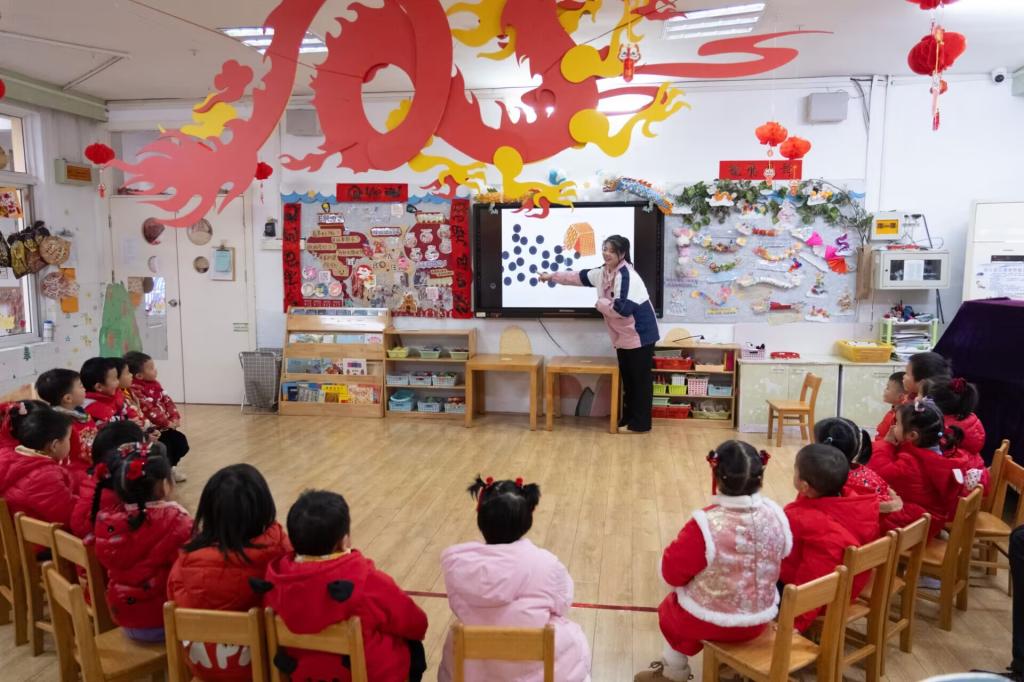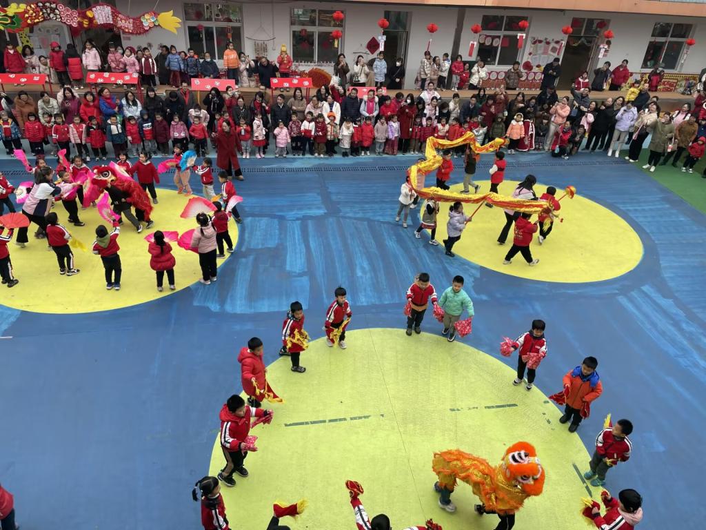 首先是精彩活泼的晨间锻炼和班级集体教学活动展示,之后迎来了孩子们期盼已久的庙会活动。随着喜庆的音乐响起,热闹的新年庙会在大班孩子们的跳狮舞龙、秧歌表演中正式开启。
