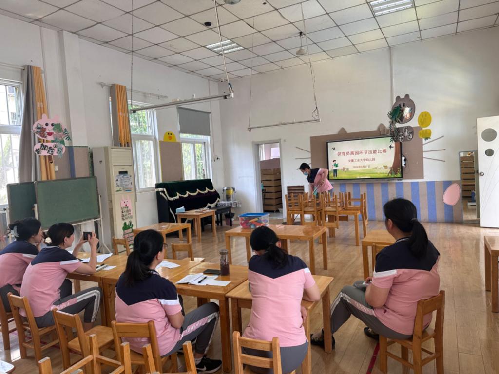 为了提高保育工作的理论与实操综合能力,夯实保育工作细致化、规范化、常态化的标准,真正做到“保教结合、教养并重、科学规范”。5月17日上午,幼儿园开展了“幼儿离园环节保育技能比赛”活动。