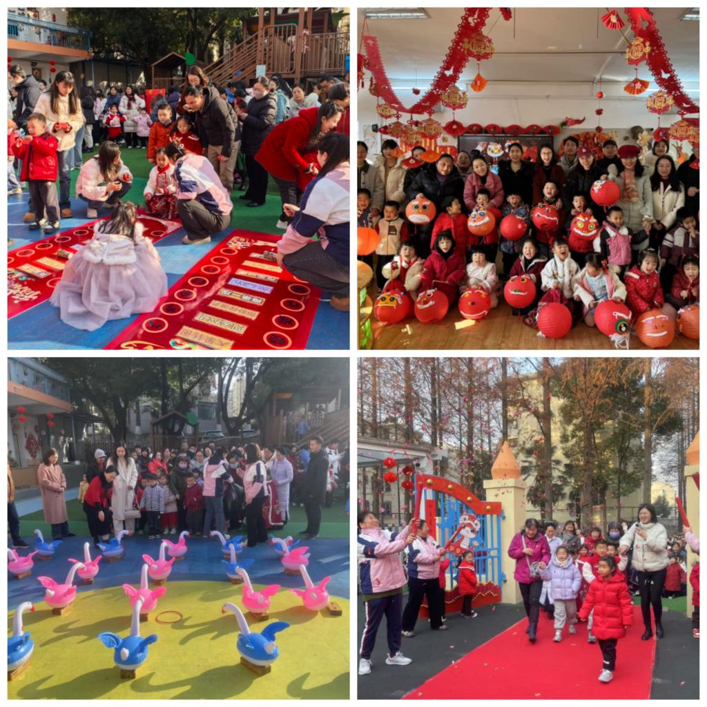 此次庆祝活动以“运动、制作、游戏”三个环节辞旧迎新。亲子晨间锻炼,家长和孩子们积极投入到各类运动项目中,预祝2025年健康快乐!亲子手工,家长与孩子们携手,共同制作新年面具、醒狮灯笼、虎头帽等传统手工艺品,祈盼2025年风调雨顺、国泰民安!亲子游园会,“好运滚滚来”“套大鹅”“射箭”“投壶”“赶鸡进笼”“投福壶”等年味游戏,将庆祝活动推向高潮,让全园师幼、家长感受浓浓的新年氛围,热烈而温馨。