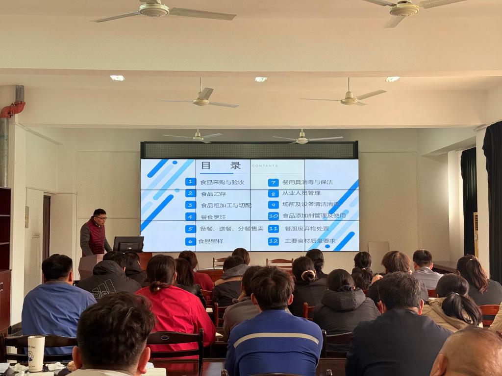 为落实年度培训计划,提高食堂从业人员专业理论,3月26日下午,饮食管理服务中心召开学生食堂食品安全培训会。饮食管理服务中心及各食堂食品安全总监、食品安全员、仓库管理员参加会议。饮食管理服务中心负责人包军主持会议。
