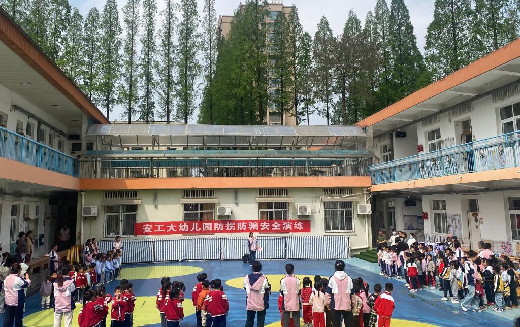 4月10日上午,安工大幼儿园组织全园幼儿开展防拐防骗安全演练活动。