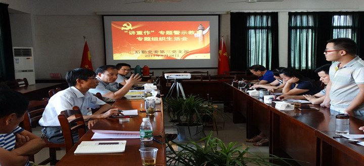 为深入推进“讲政治、重规矩、作表率”专题警示教育扎实开展,8月28日,后勤党委第三支部在后勤处会议室召开专题组织生活会。会议由支部书记雷连宝主持,全体党员、群众代表以及计算机164班级学生代表参加会议。
