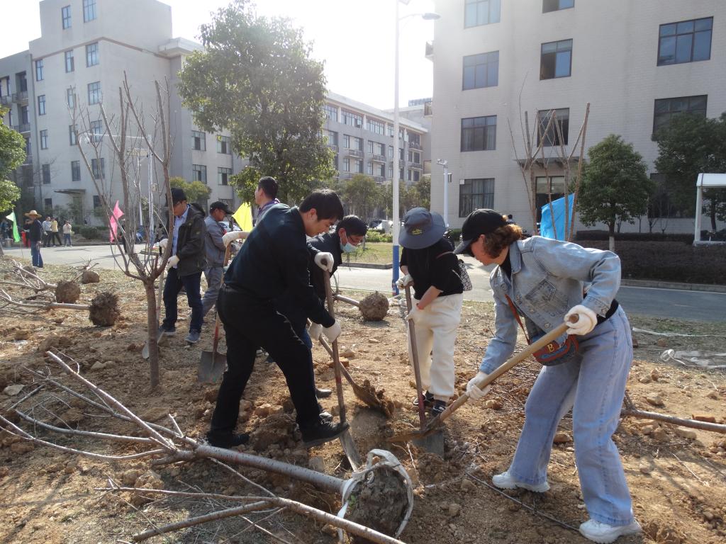 疫情防控不松懈,植树造林添绿意。3月11日下午,后勤处组织党员干部职工和学生代表共60余人,在秀山校区冶材化实训楼东侧组织开展校园义务植树活动。
