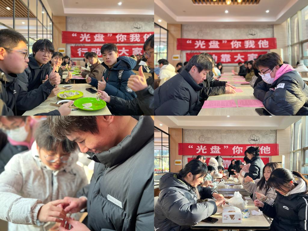 活动现场,师生们热火朝天地探讨了各地的冬至习俗,如姑苏酿米酒、江南吃汤圆、北方吃饺子、四川喝羊肉汤等,大家用自己拿手的方法包各式各样的饺子,切磋交流包饺子技巧,欢声笑语凝结成冬至最温暖的祝福。“这次活动让我备受教育,一粥一饭当思来处不易,半丝半缕恒念物力维艰,珍惜粮食,从我做起,从现在做起!”资232班王逸飞十分感慨地说。