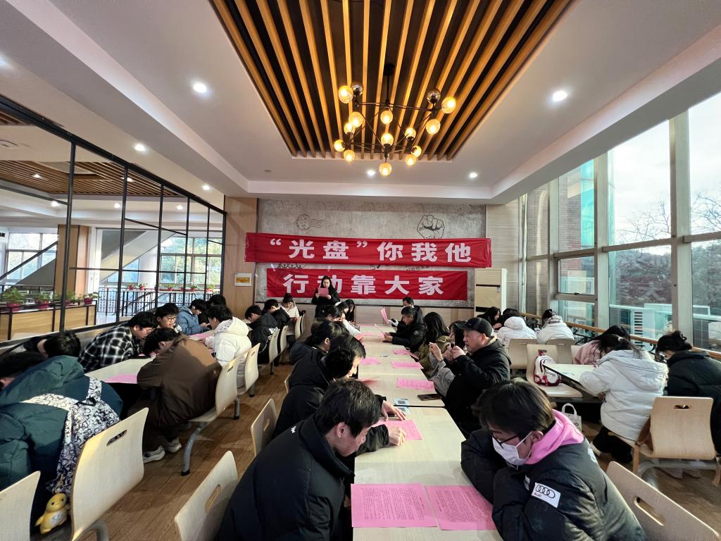 活动前,学生公寓党支部党员潘妍同志带领大家学习了习近平总书记关于制止餐饮浪费行为的重要指示精神,大家集体观看了《反对餐饮浪费 从你我做起》视频,大家郑重承诺:“我是安工大人,传承美德、勤俭节约、光盘行动、从我做起,争做爱粮节粮的倡导者、宣传者、践行者”。
